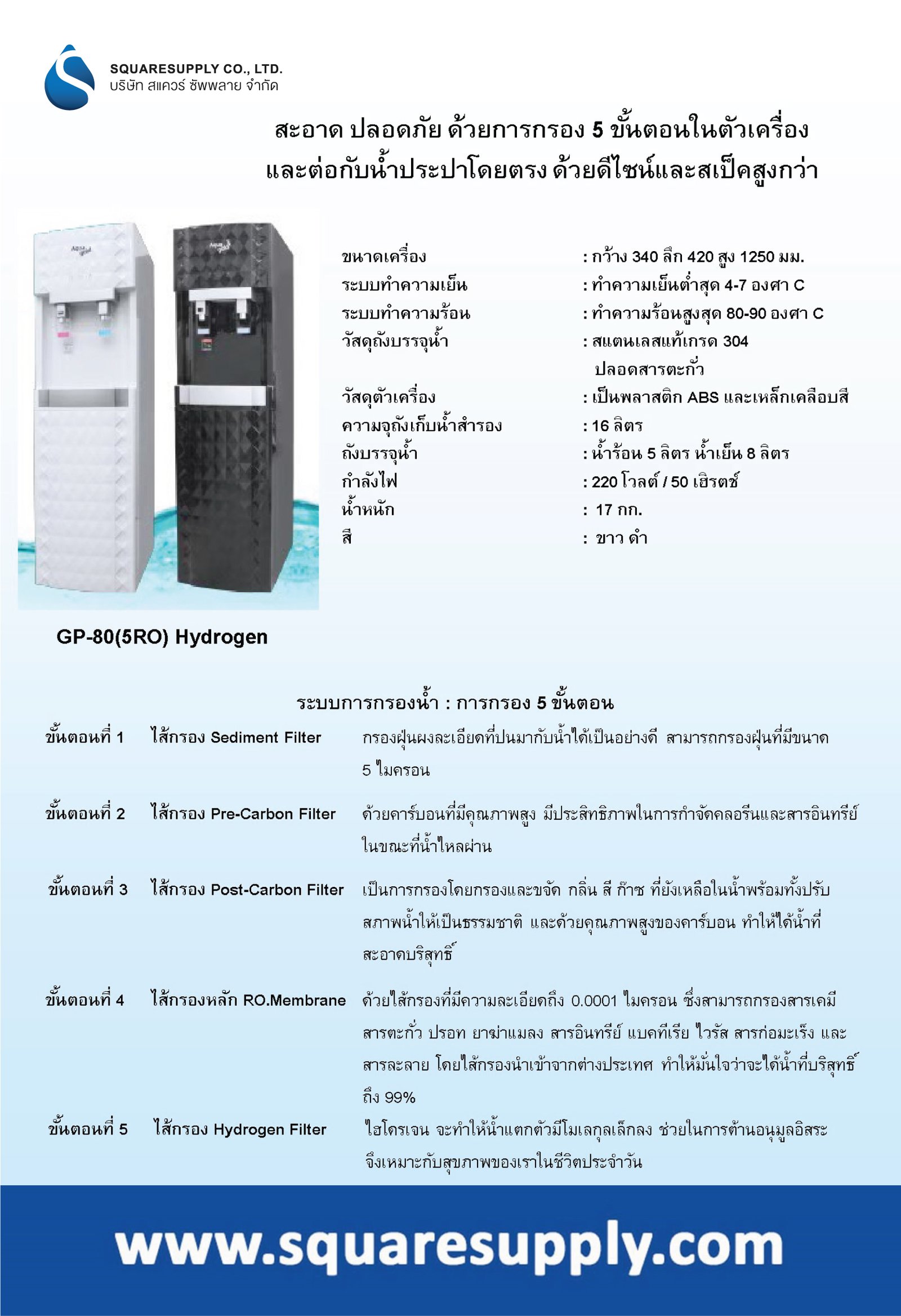 ตู้น้ำดื่ม ร้อน-เย็น รุ่น SQC-GP80-RO&Hydrogen