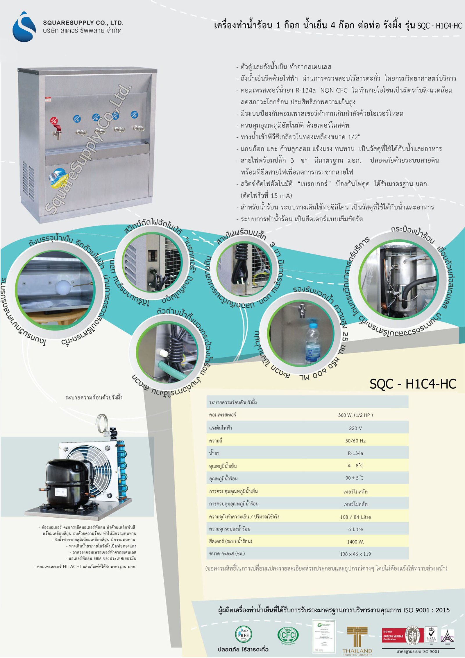 • อุณหภูมิน้ำเย็น : 4 – 8 องศา
