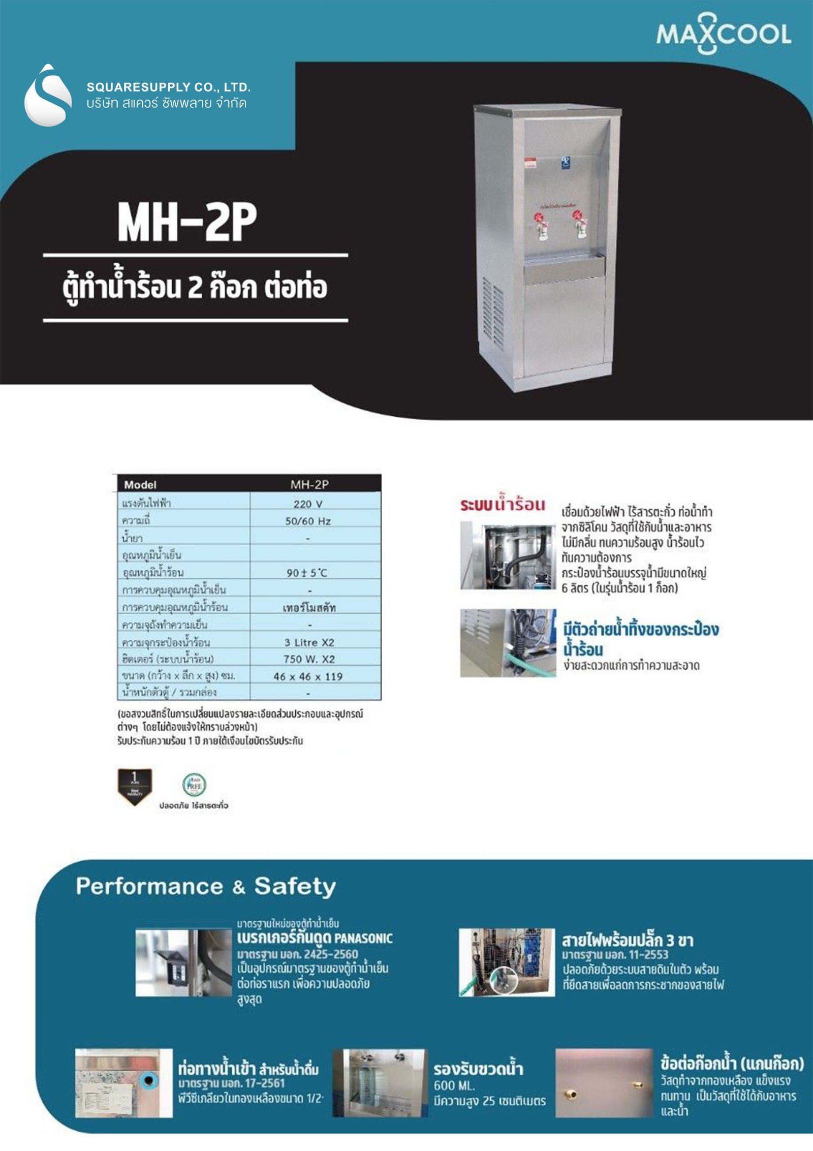 • ฮีตเตอร์ (ระบบน้ำร้อน) : 750 w. x 3